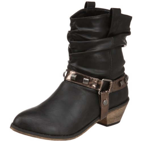 Glam up the traditional cowgirl boot in this Miss Me Olen-2 boot. The ruched boot shaft is accented with studded straps at the base, and two pull tabs provide easy on/off functionality. Spice up skinny jeans or flirty skirts with this ankle boot.