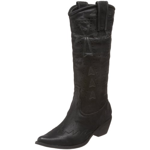 Roper offers this trendy below-the-knee design for pairing with leggings, tights, minis and skinny jeans. Crafted with a leather-like upper, it has a pointed toe with tonal overlays, punch-cut details and stitching accents. Double tabs at the collar come in handy for pulling it on, while the chunky, stacked heel lends comfortable height.